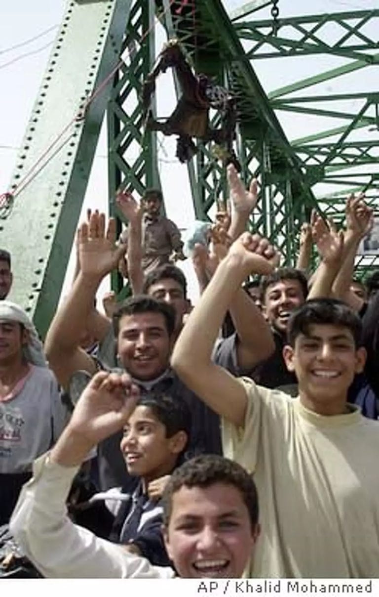 The CPA’s incapacity was a running joke as early as the autumn of 2003, with people saying it stood for “Can’t Provide Anything”, and this was on display most clearly in April 2004, when the Zarqawists in Fallujah and the Mahdi Army (Jaysh al-Mahdi) of renegade Shi’a cleric Muqtada al-Sadr erupted simultaneously, and the Bremer regime completely failed. Four contractors delivering food in Fallujah had been lynched, and their bodies dragged through the streets, burned, and then gruesomely strung up over the iconic Iron Bridge—all on video, shown to the world.39 As one observer noted, “The mob could have cooked and eaten its victims without making things very much worse.” The Zarqawists had taken over Fallujah and Bremer’s order to retake the city dissipated, as did his instruction for the arrest (or killing) of Al-Sadr, who had been wanted for his role in the murder of Abdul-Majid al-Khoei, a Shi’a cleric from a storied family, the day after Baghdad fell.