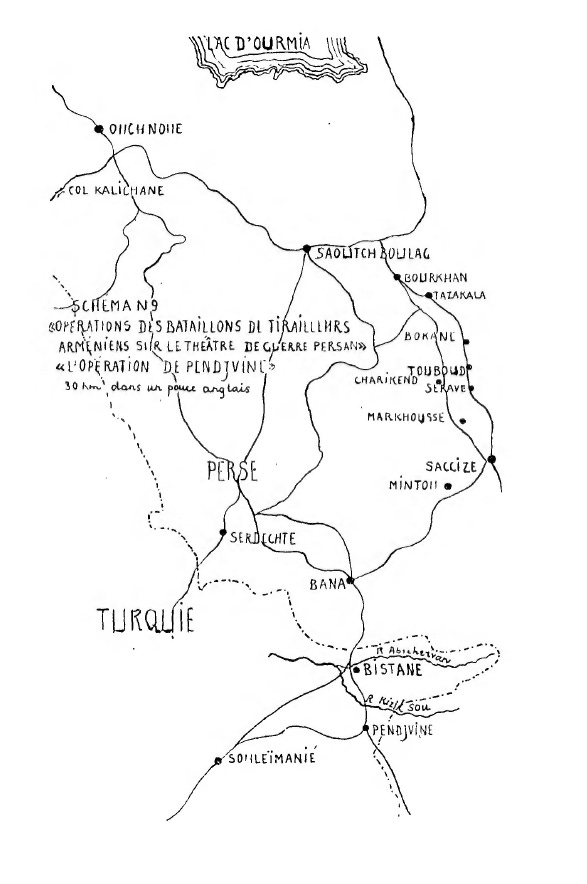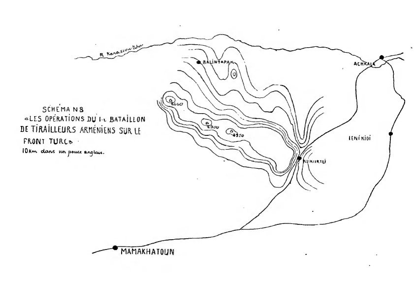 On 19 November the legion had its first encounter with the enemy near the village of Aaghueze; it then successively drove back the Kurdish hordes and, after sharp fighting, occupied the villages of Pirsahan, Kapanak and Khosrovéran, thus making itself master of the massif that covered the southern pass.