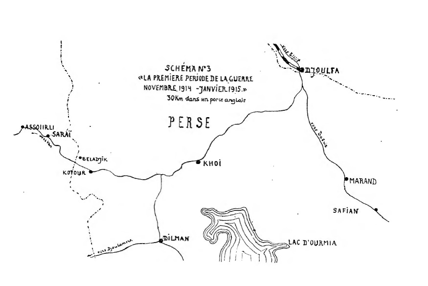 As a consequence of the course of the Sarikamiche operations and the appearance of considerable Turkish forces in the direction of Tabriz, the legion, together with other units, received the order to withdraw via Khoï toward Djoulfa, where it arrived on 15 January, covering the exodus of the Armenian population of the Dilman region.