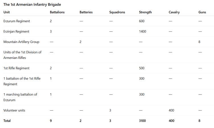[Footnote is an extended table with details of the Armenian Corps.]